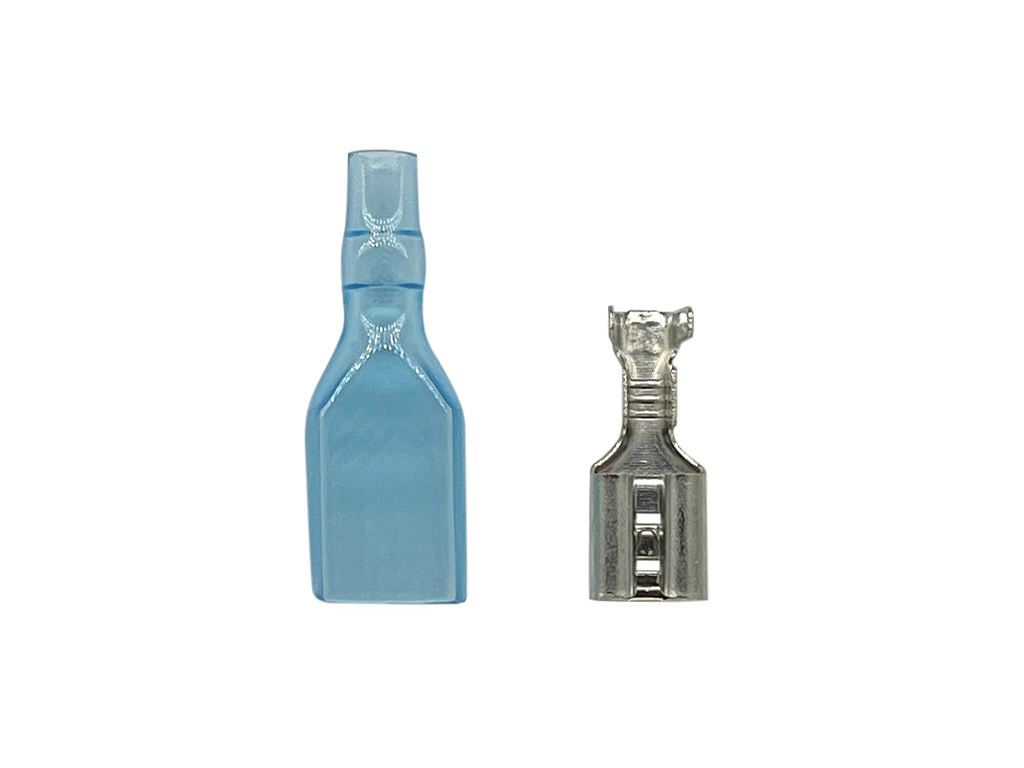 Обжимная клемма-мама 6,3мм, прямой формы, поставляется упаковкой по 100шт. в комплекте с пылевлагозащитой. Предназначена для соединения с клеммой типа "папа" .