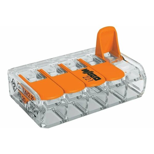 Данная модель предлагает пять контактов, что позволяет легко и быстро соединять несколько проводов одновременно. Конструкция клемм гарантирует надежный контакт, что особенно важно для обеспечения стабильно работы электрических сетей. Эти пятиконтактные клеммы идеально подходят для различных видов проводов и обеспечивают высокую степень надежности.