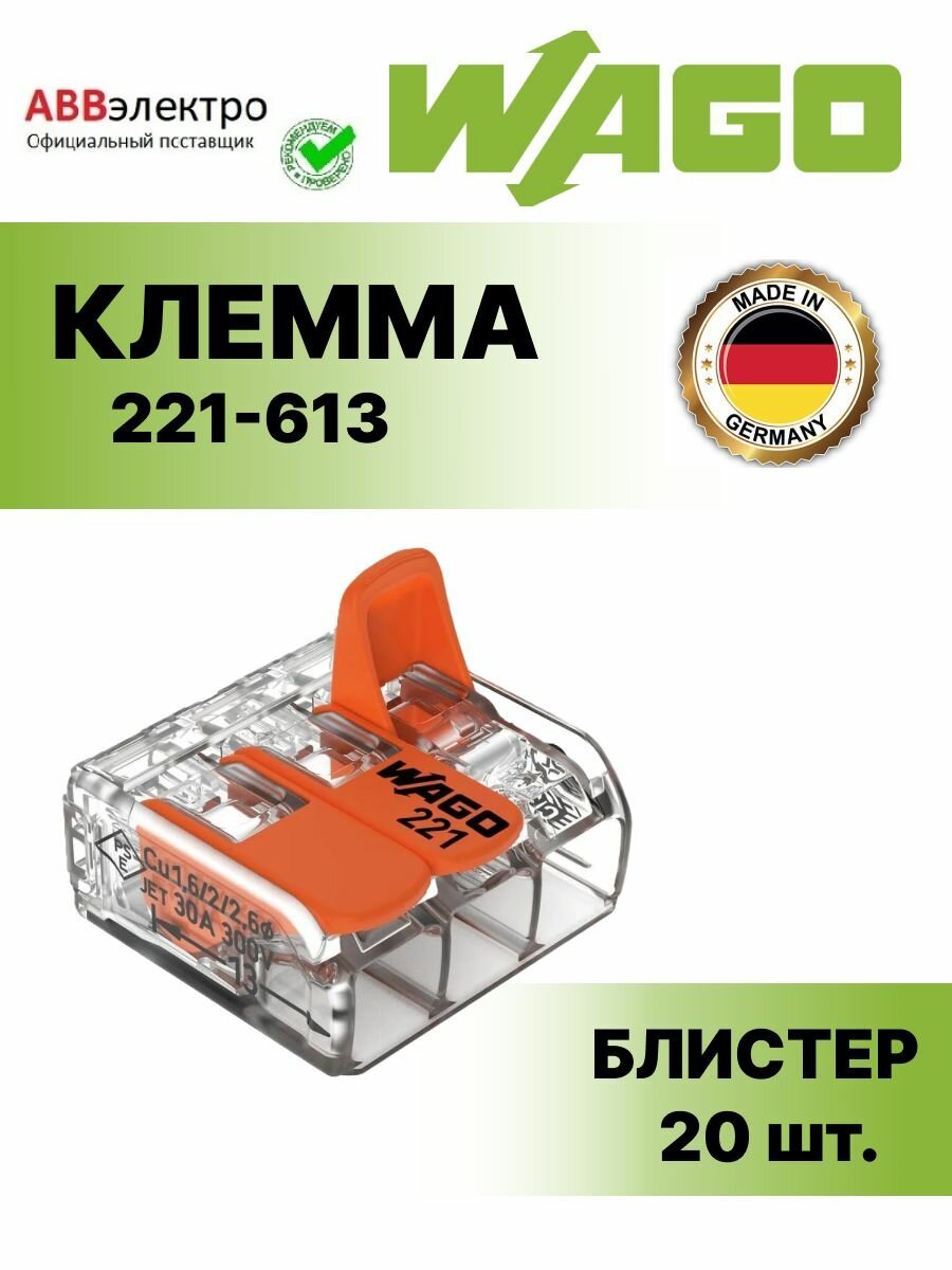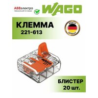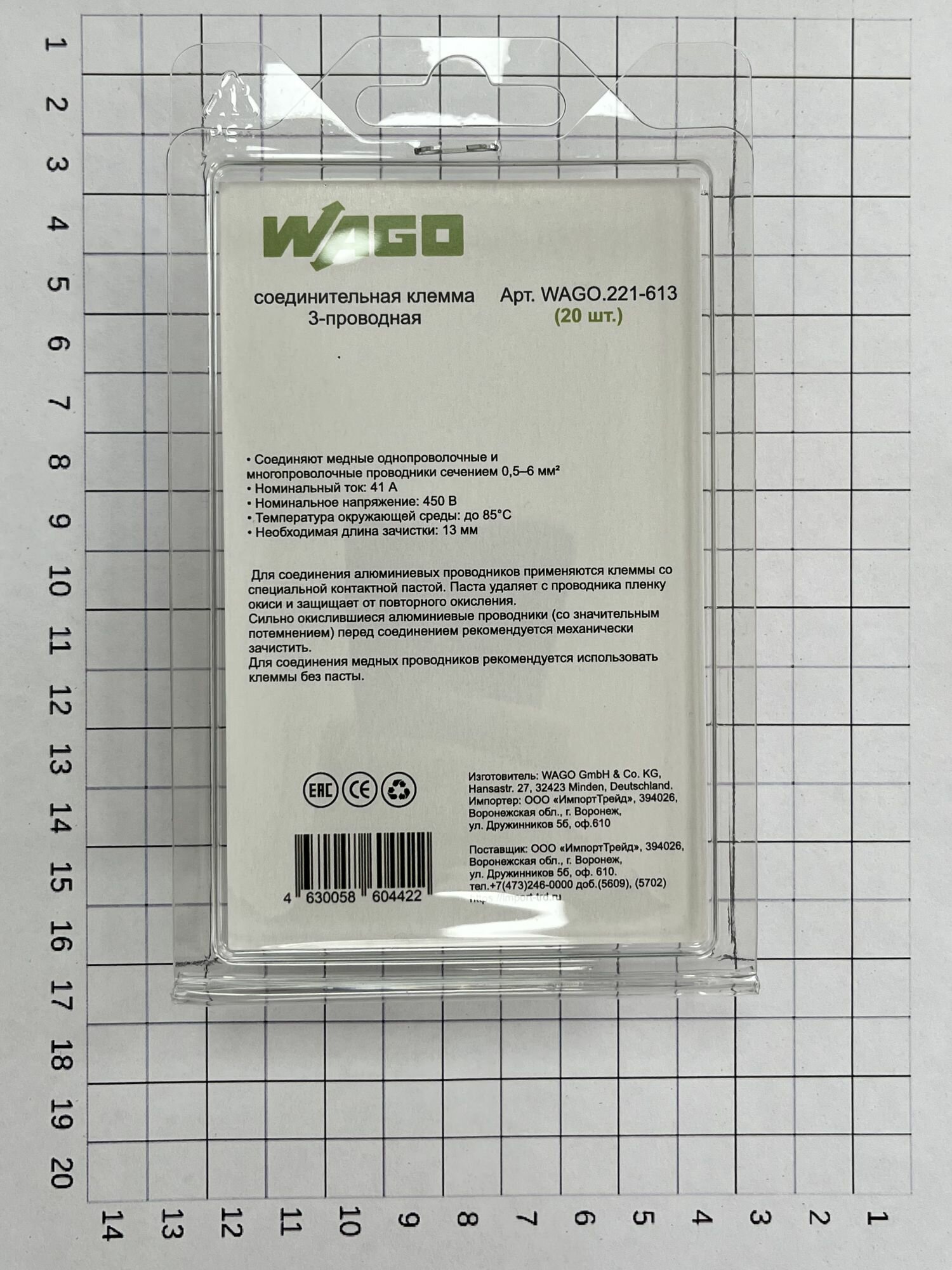 Клемма WAGO.221-613 для всех типов проводников 3х0,5.6мм. кв. оригинал (блистер-упаковка) — 20шт.: сравнение цен, характеристики, фото, актуальное наличие и цены.