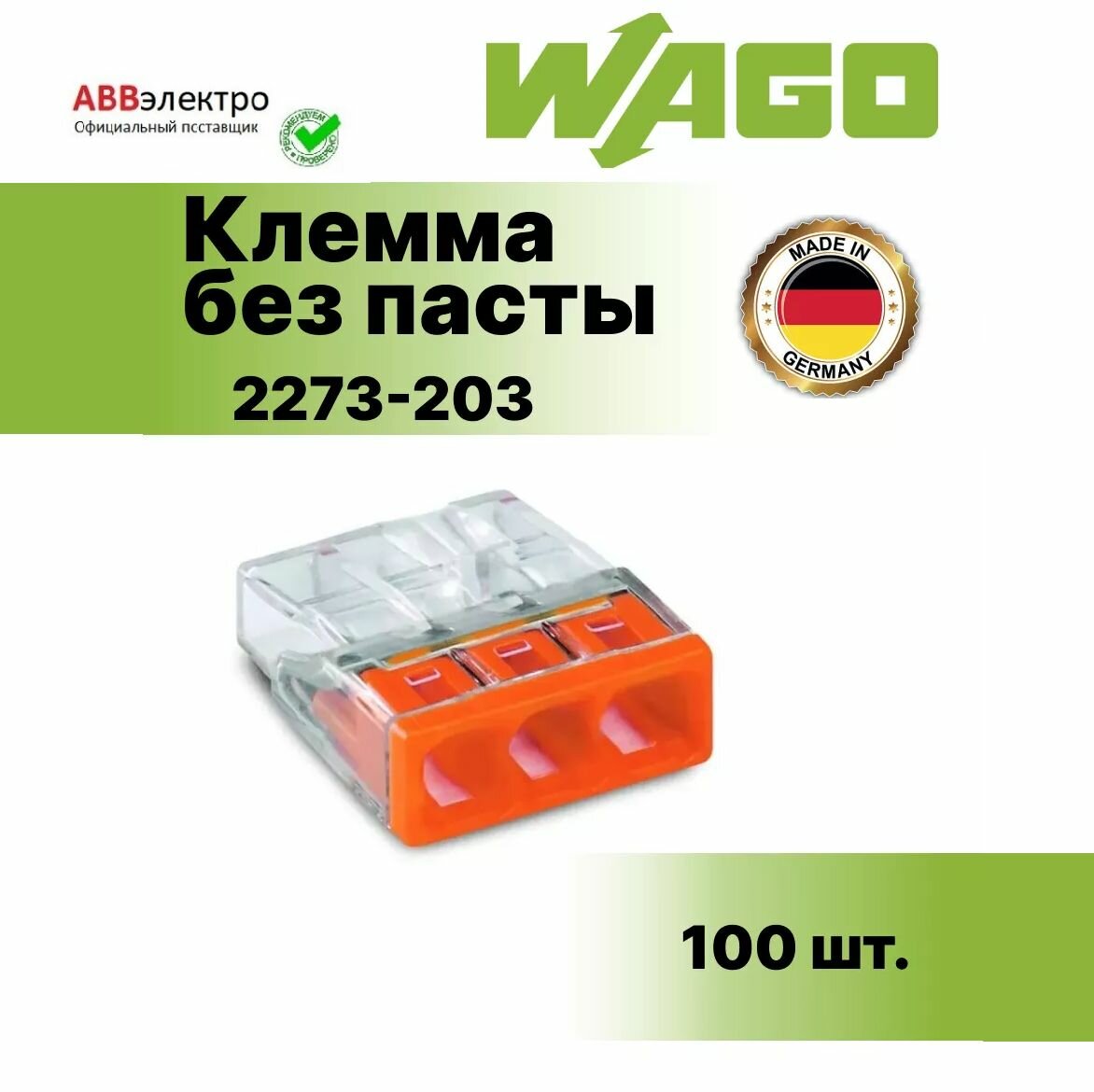 Клемма WAGO 2273-243 (с пастой) 100 шт. 2686 предназначена для соединения медных или алюминиевых одножильных проводников.