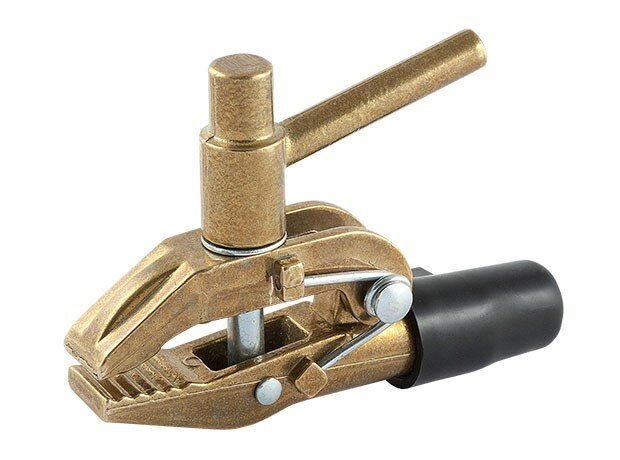 Клемма заземления ESAB КЗ-600А EG600 струбцина (зажим обратного кабеля) очень крепкая, из сплава меди с цинком. Обеспечивает плавное перетекание тока от кабеля к заземляющей поверхности. Для большей надежности каркас модели отлит под давлением, что гарантирует отсутствие дефектов. Сварочный кабель крепится с помощью винта с шестигранной головкой, зажим имеет максимально раскрытие 50 мм и предельный ток 600 ампер.