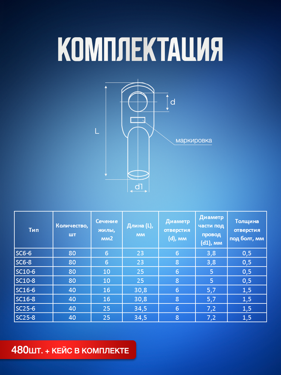 Клеммы, кабельный наконечник кольцевой 480 шт в кейсе: сравнение цен, характеристики, фото, актуальное наличие и цены.