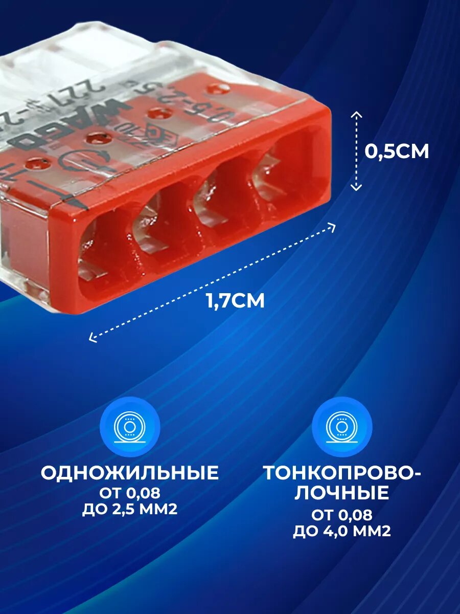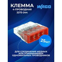 Купить Клеммы соединительные для проводов WAGO 2273-244 с пастой, 4 контакта, 25 шт с доставкой по всей России.