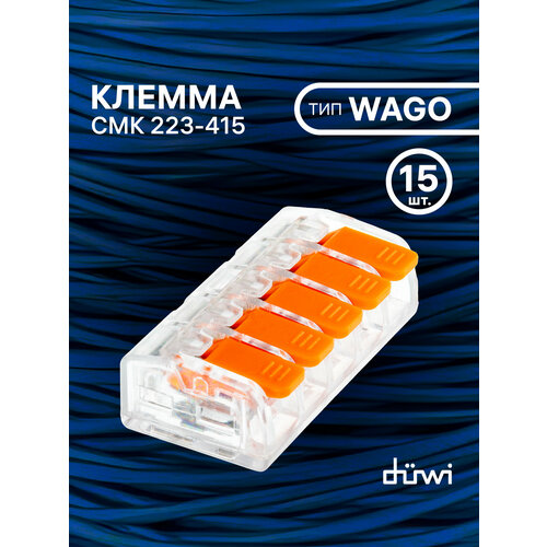 Cоединительные монтажные клеммы duwi СМК 222-415 являются полным аналогом клемм WAGO/ВАГО. Прозрачные 5-х контактные клеммы подходят для соединения моножильных и многожильных проводов, защищая их от повреждения и исключая возможность замыкания. Моножильные провода достаточно только зачистить, а многожильные - нужно обжать наконечником для наилучшего соединения контактов. Рычажки предназначены для надежного зажима кабелей. Клеммы используются в целях переменного и постоянного тока с напряжением до 450В. Номинальный ток: 32 А. Прозрачный корпус позволяет отследить качество соединения.
