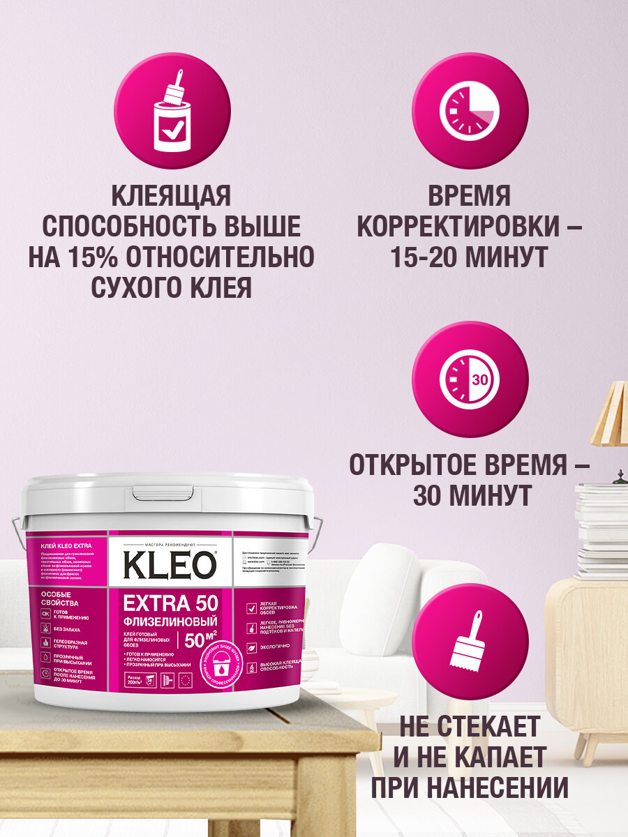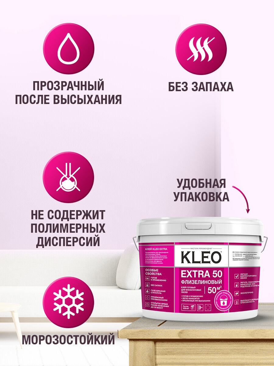 Купить Клей для обоев флизелиновых готовый KLEO EXTRA ведро 10кг, 50кв. м с доставкой по всей России. Клей для обоев флизелиновых готовый KLEO EXTRA ведро 10кг, 50кв. м: сравнение цен, характеристики, фото, актуальное наличие и цены.