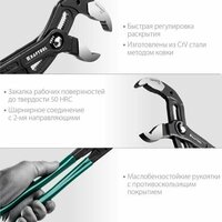 Клещи переставные KRAFTOOL 22353-30, предназначены для выполнения слесарно - монтажных и ремонтных работ. рофессиональные клещи KRAFTOOL KAYMAN обеспечивают удобство настройки раствора губок простым нажатием кнопки Цельнокованая конструкция и тщательно закаленные рабочие поверхности гарантируют высокое качество выполнения слесарно-монтажных и ремонтных работ. Можно использовать в качестве трубного или разводного ключа.