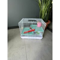 Клетка для грызунов от бренда «Чистый котик» - идеальное жилище для Ваших маленьких питомцев. Она выполнена из качественных и легких материалов, которые обеспечивают долговечность и безопасность, простоту перемещения. А выбор из двух цветов (голубой и белый) позволит вписать ее практически в любой интерьер. Особенности: - дверь и люк; - ручка для переноски; - три этажа с полным набором аксессуаров. Размер: 45,5х28,5х37 см. Высота поддона: 7 см. Расстояние между прутьями: 1 см. Вес: 1,8 кг. Клетка оснащена дверью и люком, что позволяет легко обеспечивать доступ к Вашим любимцам и упрощает процесс их содержания. Для удобства перемещения она снабжена ручкой, благодаря которой Вы сможете без усилий переносить из одного места в другое, а компактные размеры делают ее идеальной для небольших пространств. В комплект входят все необходимые аксессуары, чтобы Ваше животное чувствовало себя комфортно и было занято в течение дня: - поилка и кормушка, чтобы питомцы всегда имели доступ к воде и пище; - колесо для бега, чтобы животные оставались в форме и сжигали лишнюю энергию; - две горки, которые станут отличным развлечением и разнообразием игрового времени; - домик, который предоставит уютное место для отдыха и сна, создавая атмосферу безопасности. Благодаря продуманной конструкции и комплектации, клетка подходит для большинства мелких, средних и больших грызунов (дегу, мыши, хомяки, песчанки, крысы и т. д.), став отличным выбором как для временного проживания, так и для длительного содержания. Она подарит для Ваших питомцев новый уютный и безопасный дом, а для Вас самих – обеспечит удобство в уходе.
