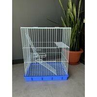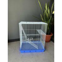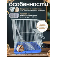 Цвет прутьев: белый с голубоватым оттенком. Размер: 55,5х37х64,5 см. Глубина поддона: 7 см. Расстояние между фальшдном и дном: 5 см. Расстояние между прутьями: 1,8 см. Диаметр прута: 0,25 см. Вес: 4,8 кг. Размер ячейки аксессуаров и фальшдна: 1х1,2. Возможность использовать без фальшдна: да.