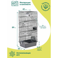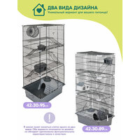 Клетка для грызунов «PetTails» разборная, шаг прута 10,5мм, 42*30*h89см, 5 этажей (+полка-домик, колесо, миска, 2 пласт. домика) серая: сравнение цен, характеристики, фото, актуальное наличие и цены.