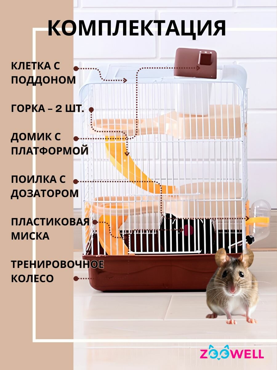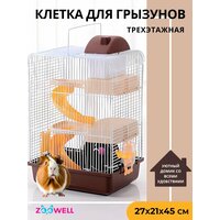 Купить Клетка для грызунов ZooWell Трехэтажная 27*21*45 см, для хомяков, мышей, крыс, песчанок, дегу коричневая с доставкой по всей России.