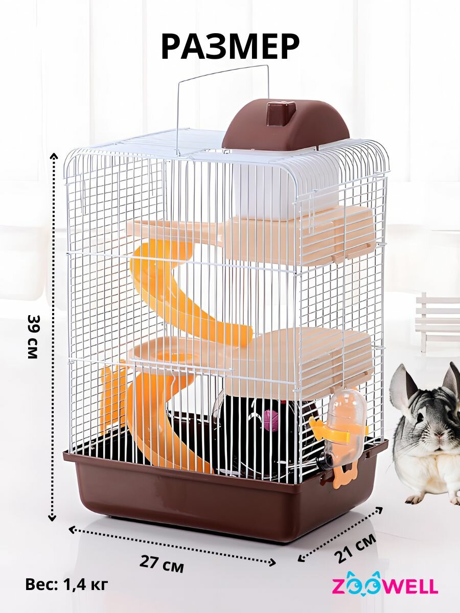 Клетка для грызунов ZooWell Трехэтажная 27*21*45 см, для хомяков, мышей, крыс, песчанок, дегу коричневая: сравнение цен, характеристики, фото, актуальное наличие и цены.