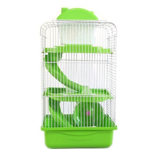 Такая клетка - целый развлекательный коттеджный комплекс для грызуна, который занимает немного места и отлично подходит для мелких домашних любимцев. Вашему грызуну понравится бегать по этажам, прятаться в домике и скатываться по горке, а также бегать в беговом колесе.
