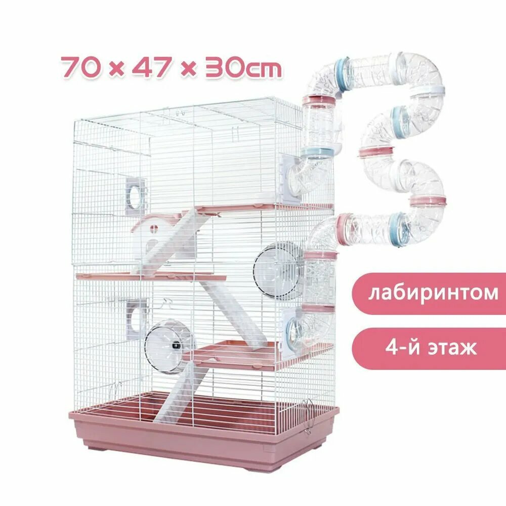 Купить Клетка для хомяков, джунгариков и грызунов большая лабиринта, 70 см с 3 этажами Розовая с доставкой по всей России.