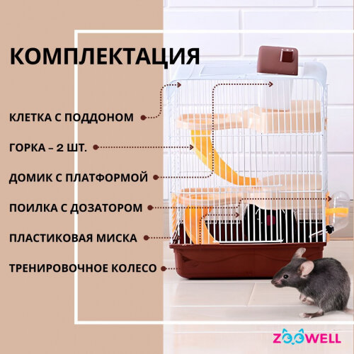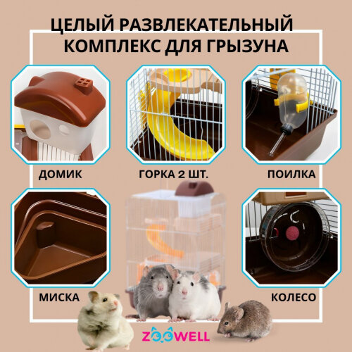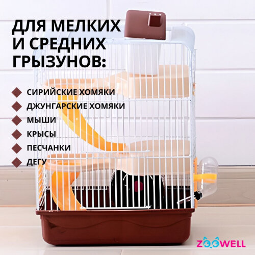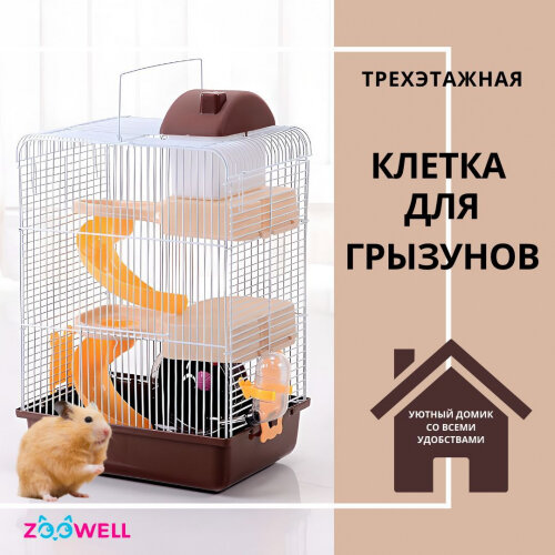 Купить Клетка Zoowell трехэтажная, для грызунов с поддоном, 39*27*21 см, цвет коричневый (CC-S30Br) с доставкой по всей России.