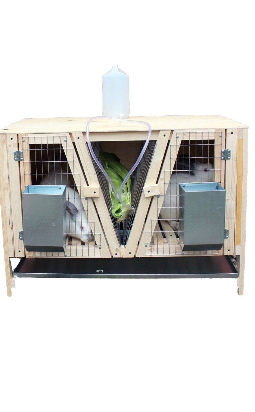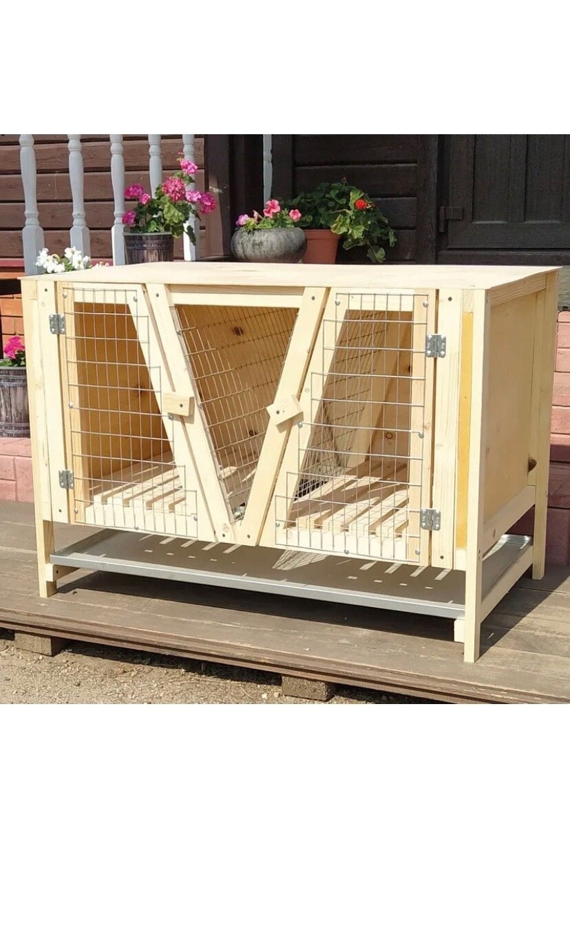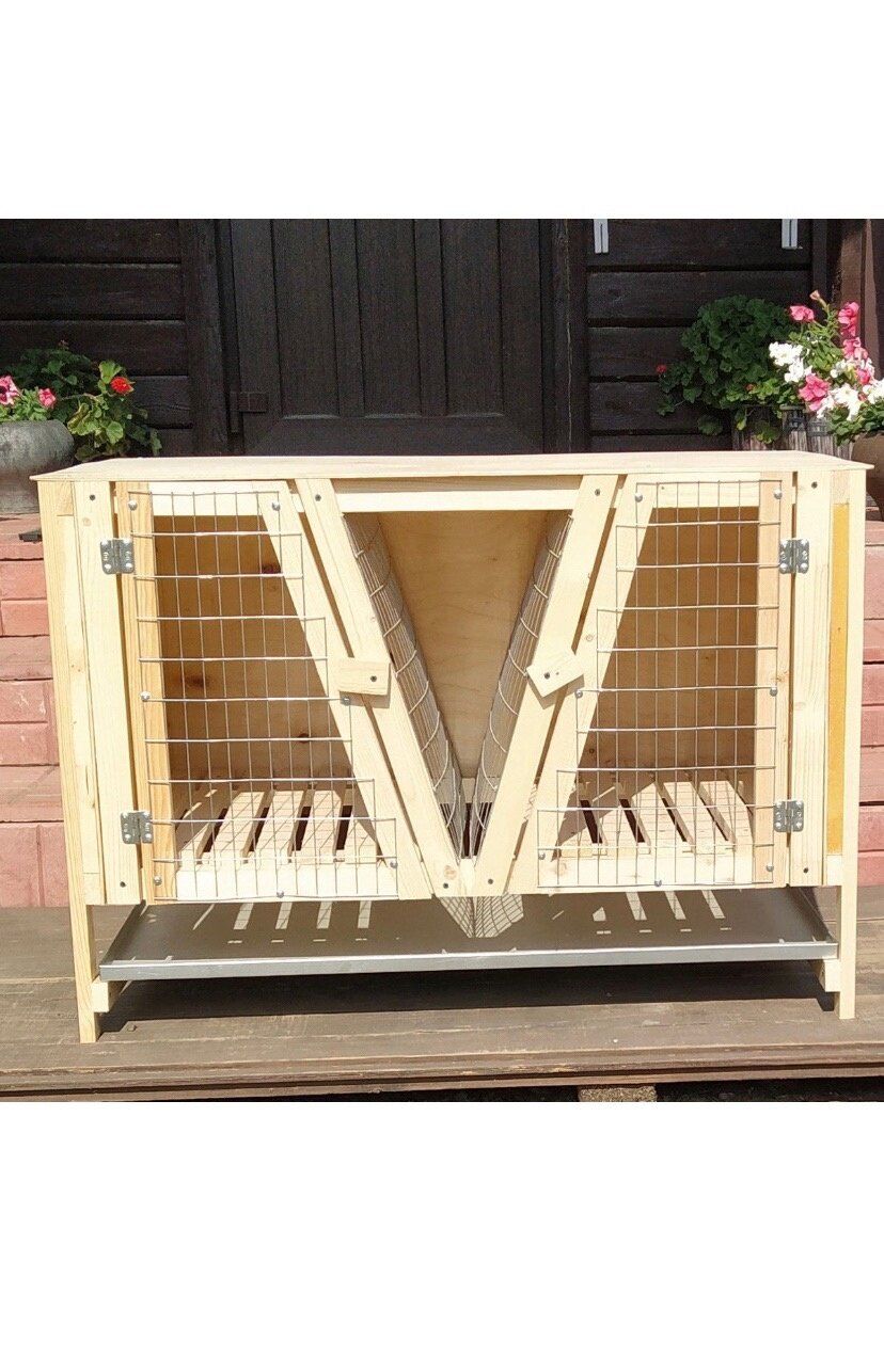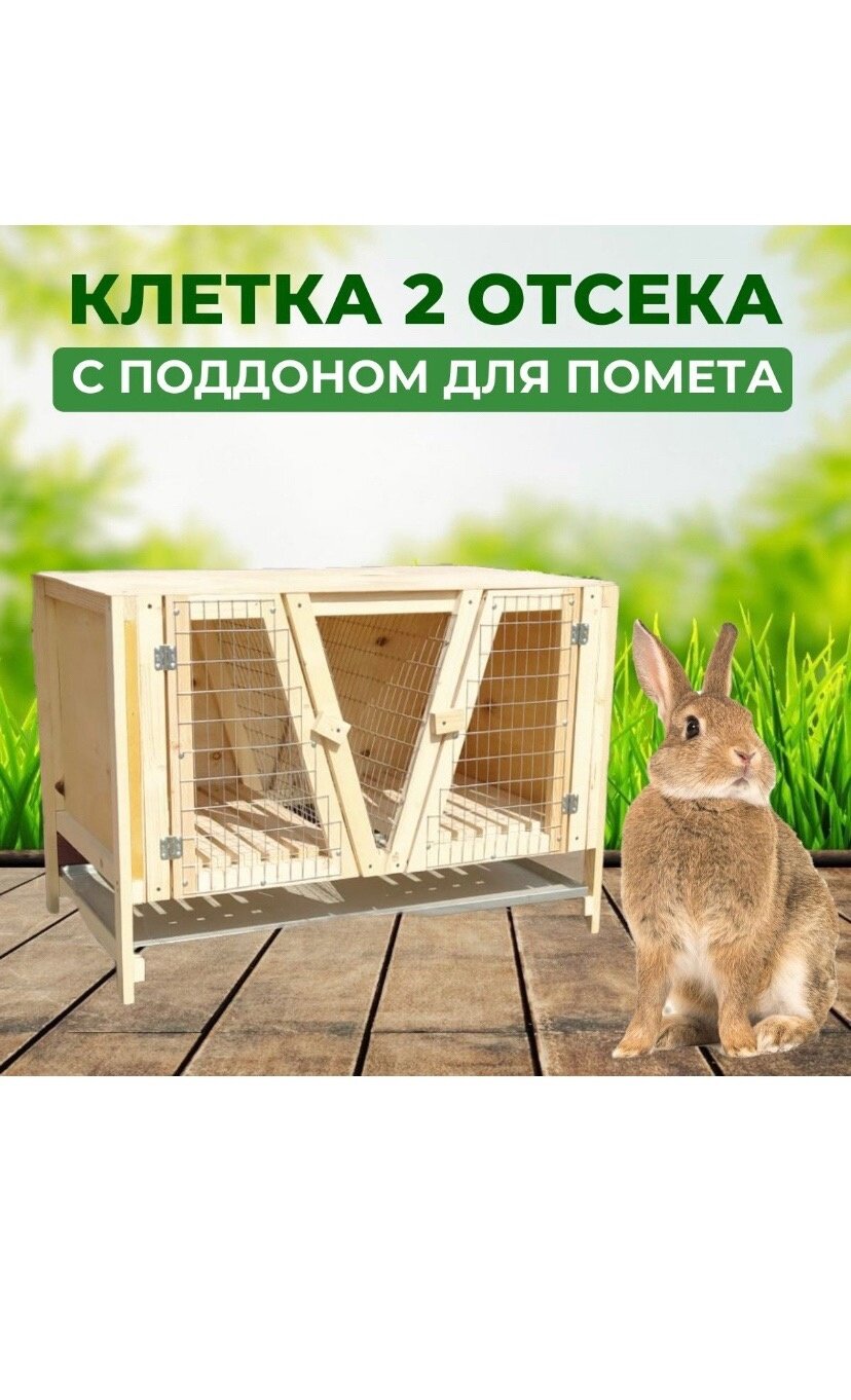 Клетка для кролика большая 2 отсека рассчитана на откорм 2 кроликов крупных пород или 4 некрупных кроликов.