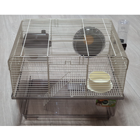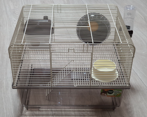В комплектацию клетки входят пластиковая миска, поилка, уютный домик на втором этаже, беговое колесо и лесенка на 2-й этаж. Это обеспечивает вашему питомцу все необходимое для комфортной жизни.