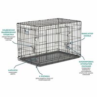 Крепкая и устойчивая двухдверная клетка для Вашего питомца с эксклюзивной технологией закрытия LapLock. Ключевые особенности: Уникальная технология закрытия LapLock. Закругленная угловая защита клетки обеспечивает безопасность питомцам и людям и не повреждает поверхность, на которой размещается. Разделяющая панель позволяет создавать универсальные отсеки. Поддон из композитного пластика легко моется. Клетка легко устанавливается и складывается без использования инструментов. Удобные ручки для транспортировки клетки с сложенном виде. Клетка выполнена из качественного металла с закругленной угловой защитой, что обеспечивает безопасность животного и хозяина, а так же не повреждает напольное покрытие. Клетки Contour оснащены эксклюзивной технологией замка LapLock, которая создает несколько точек блокировки по периметру двери для дополнительной безопасности в сочетании с классическими защелками с задвижкой. Двери, расположенные на смежных боковых сторонах клетки, оборудованы низкими порогами и большими отверстиями, позволяя домашним животным легко входить и выходить из клетки. В клетке предусмотрена возможность разделения на 2 части: одна - для отдыха и сна, другая - для бодрствования и игр. Легко регулируемая перегородка позволяет быстро менять пропорции отделов клетки с ростом щенка. Дно клетки изготовлено из качественного композитного пластика, который легко очищается от загрязнений. Клетку легко собирать и разбирать, не прибегая к помощи специальных инструментов. В разобранном виде клетка не занимает много места и с удобством транспортируется за счет специальных ручек.