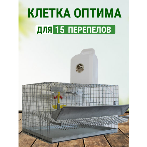 В комплект клетки на 15-20 перепелов входят: - навесная металлическая кормушка, - яйцесборник с высокими бортами, - ниппельная поилка на 2 ниппеля с каплеуловителем, - бак для воды на 5 л, - выдвигающийся поддон для мусора и помета.