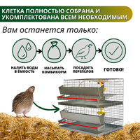 Перепела- птички, которым необходима плотная рассадка. Если Вы берете клетку на 30 голов и планируете держать несушек, Вам нужно посадить в клетку 26-30 голов, при обилии свободного места птицы могут начать испытывать стресс и агрессировать друг на друга, а это повлияет на яйценоскость и набор массы в отрицательном ключе.