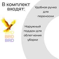Клетка оборудована удобной ручкой для переноски и специальным пластиковым наружным поддоном, облегчающим процесс уборки. Расстояние между прутьями составляет 11 мм, что обеспечивает безопасность и комфорт для птиц.