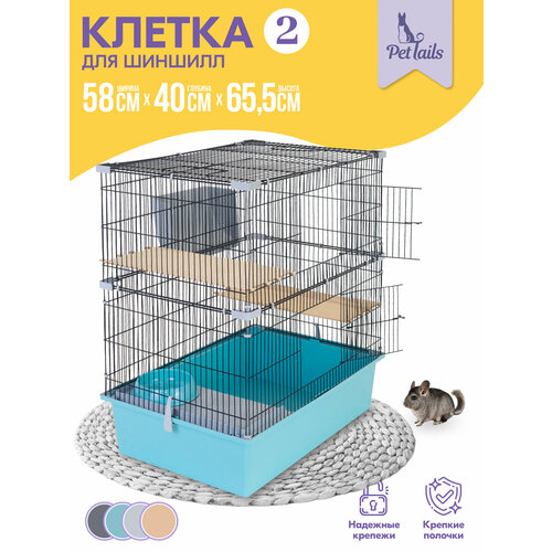 Купить Клетка для шиншилл PetTails № 2, разборная, шаг прута до 14мм; 58х40хh65,5см, бирюзовая с доставкой по всей России.