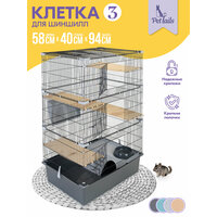 Купить Клетка для шиншилл PetTails № 3, разборная, шаг прута до 14мм; 58х40хh94см, серая с доставкой по всей России.
