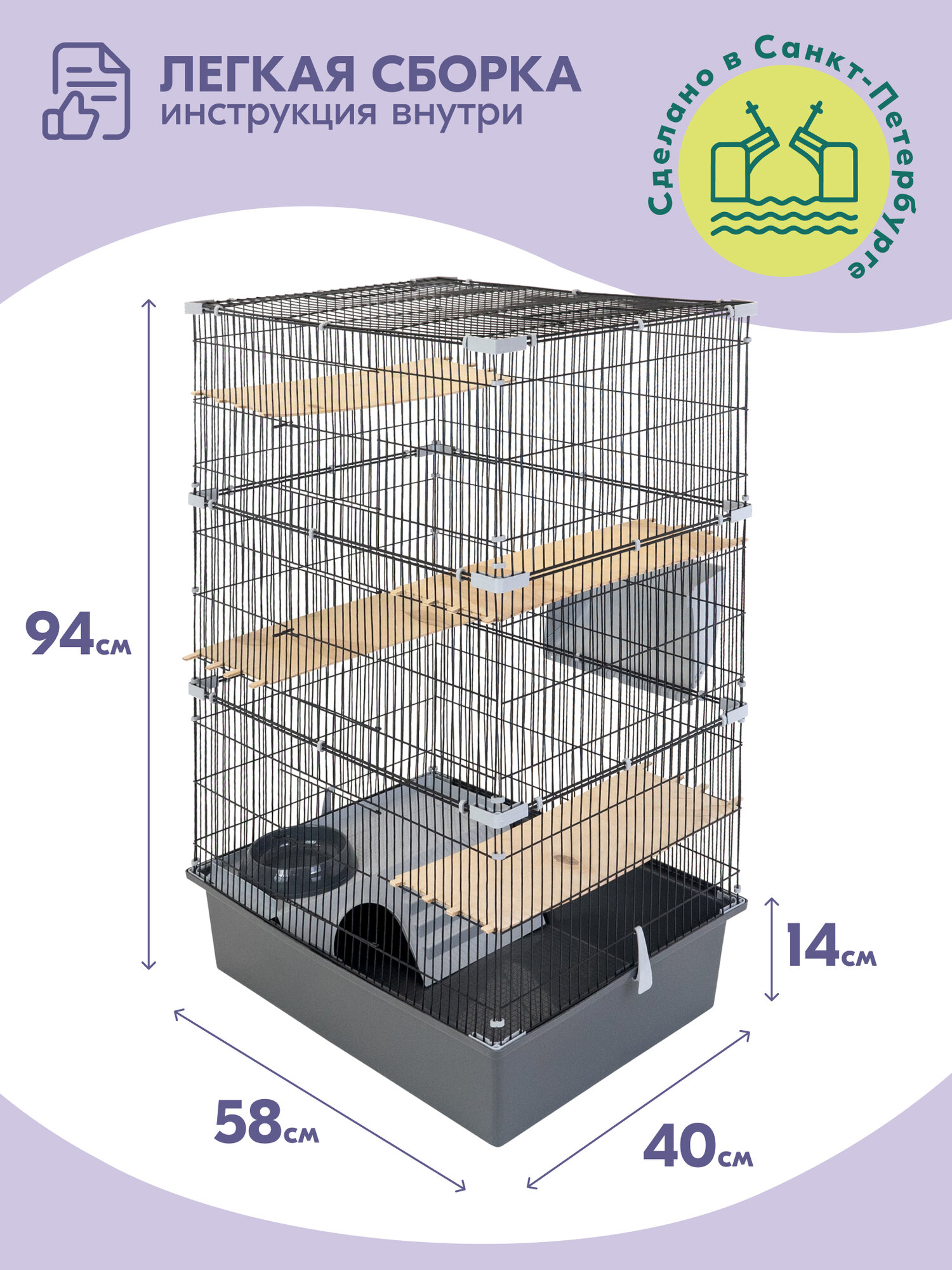 Клетка для шиншилл PetTails № 3, разборная, шаг прута до 14мм; 58х40хh94см, серая: сравнение цен, характеристики, фото, актуальное наличие и цены.