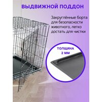 Артикул: 1947-834. Материал: Металл, Вес: 14500 гр, Размер упаковки: 66 x 9 x 94 см, Температурное ограничение: Нет, Длина, см: 94, Высота, см: 72, Ширина, см: 64, Вид животного: Собаки, Цвет: Чёрный, С оборудованием: Нет. Складная клетка для собак с поддоном это удобное и практичное решение для комфортного содержания питомца. Её просторные размеры подойдут для крупных пород, таких как лабрадор, овчарка или хаски. Чёрный цвет и металлическая конструкция делают клетку стильной и долговечной, а складной механизм упрощает хранение и транспортировку. ОсобенностиВместительные размеры: длина 94 см, ширина 64 см, высота 72 смМеталлическая конструкция обеспечивает прочность и долговечность. Складной механизм экономит место при хранении. Поддон облегчает уборку и поддерживает чистоту. Чёрный цвет сочетается с любым интерьером. Для чего нужна клетка? Клетка создаёт безопасное пространство для собаки, где она может отдыхать, чувствовать себя защищённой и привыкать к режиму. Это особенно важно для щенков или собак, которые остаются дома одни. В путешествиях клетка защищает питомца от стресса и лишних движений, а дома помогает организовать его личное пространство. Почему выбирают эту модель? Эта клетка сочетает в себе функциональность и удобство. Прочная металлическая конструкция выдерживает активность крупных собак, а складной механизм делает её универсальной для дома и поездок. Просторное внутреннее пространство обеспечивает комфорт, а поддон упрощает уход за клеткой.