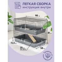 Купить Клетка «PetTails» кролик №2, складная, 2 этажа, шаг прута 25мм, 98х58х81см, сер-черн с доставкой по всей России.