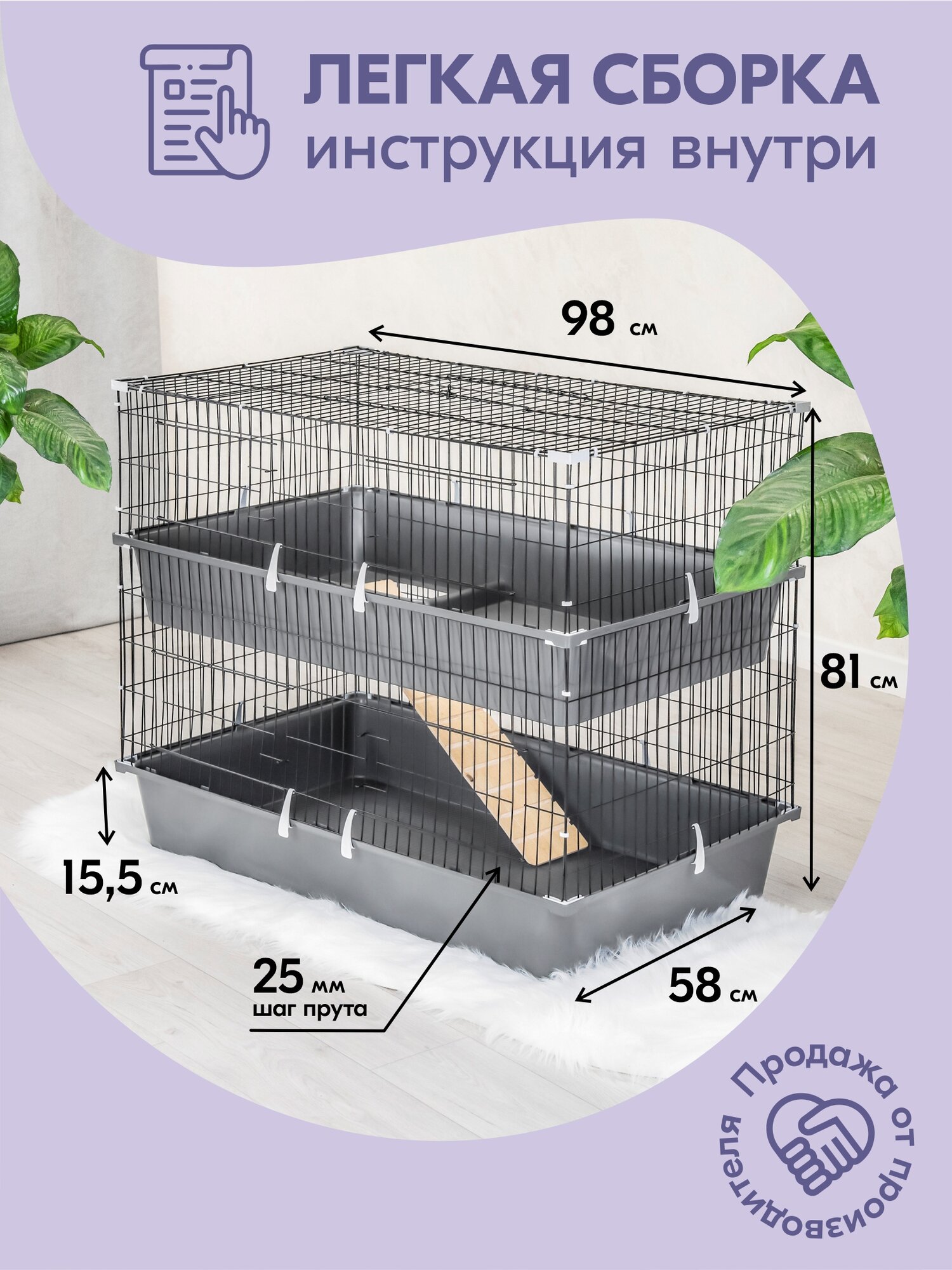 Клетка «PetTails» кролик №2, складная, 2 этажа, шаг прута 25мм, 98х58х81см, сер-черн: сравнение цен, характеристики, фото, актуальное наличие и цены.