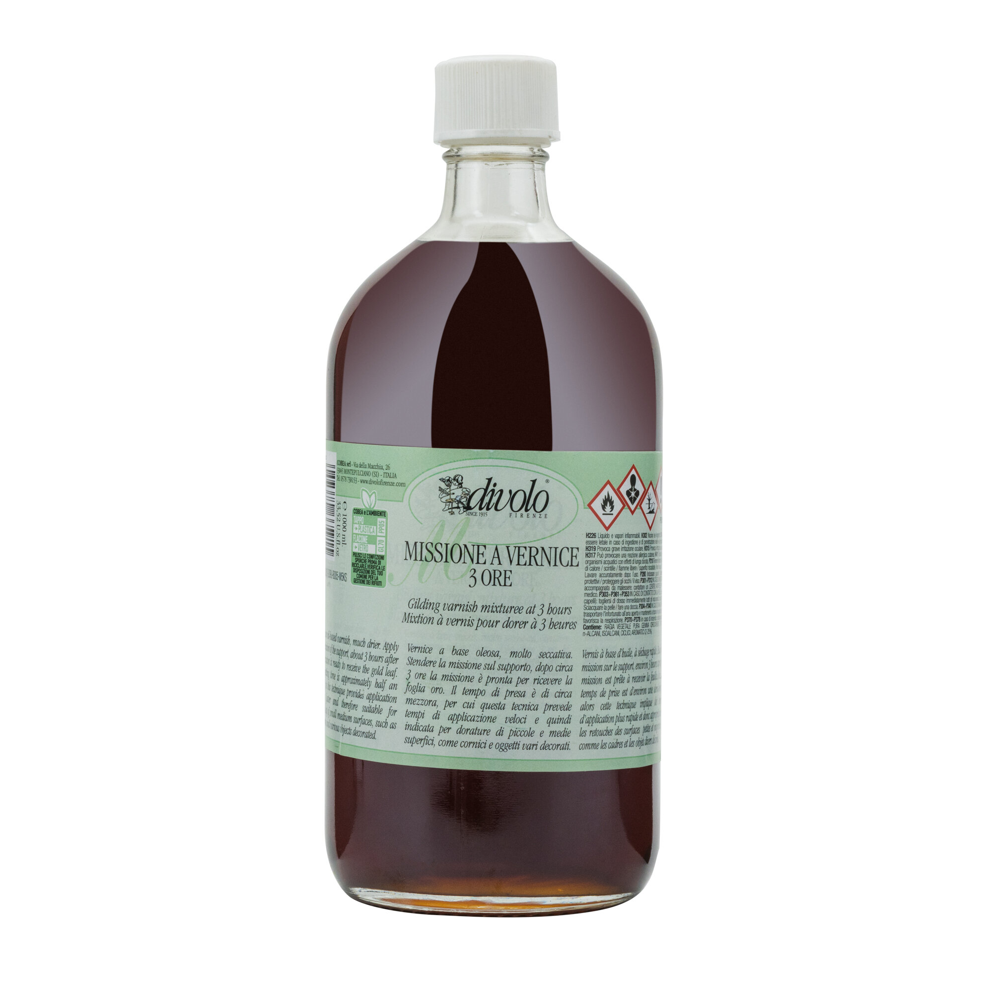 Клеящая смесь на лаке, на масляной основе, очень сухая, разработанная для удовлетворения потребностей профессиональных пользователей в технике золочения. Обладает отличными адгезионными характеристиками. клеящая смесь на лаке, на масляной основе, очень сухая, разработанная для удовлетворения потребностей профессиональных пользователей в технике золочения. Обладает отличными адгезионными характеристиками. Распределите миссион (клеящую смесь на лаке) по основе, примерно через три часа миссион готов для нанесения сусального золото. Время для нанесения сусального золота составляет около получаса, поэтому эта техника требует быстрой работы с сусальным золотом, также подходит для ретуширования небольших и средних поверхностей, таких как рамы и различные декорированные объекты.