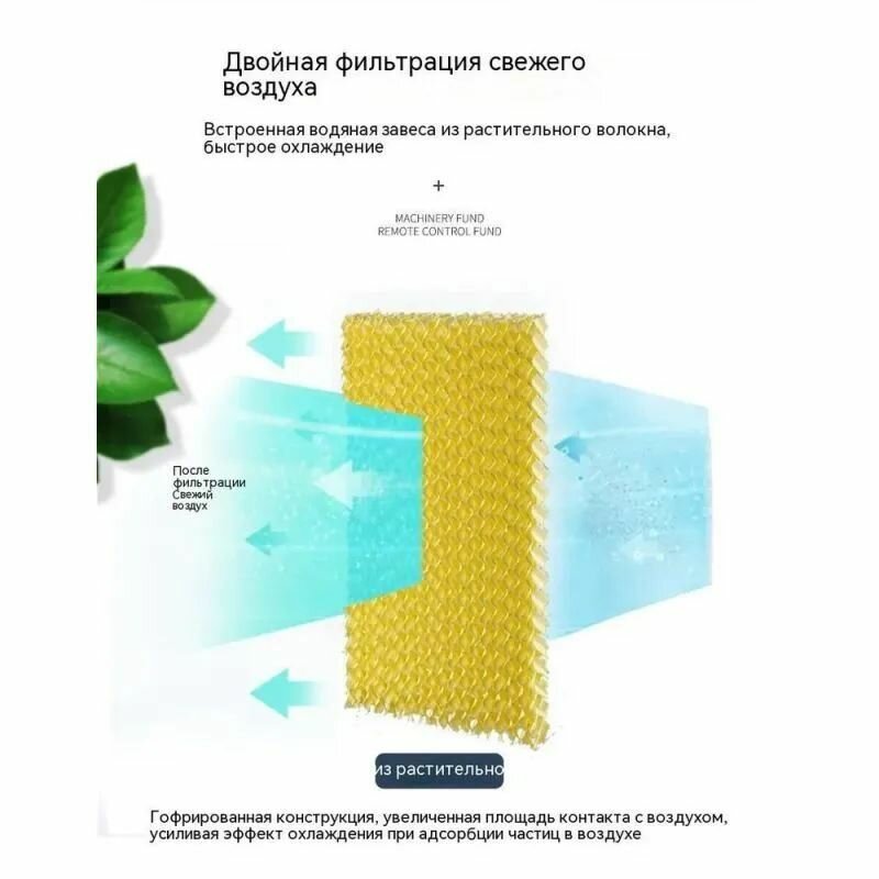 Двойная повторная фильтрация воздуха, встроенная водяная завеса из растительного волокна, высокая скорость охлаждения. Гофрированная конструкция увеличивает площадь контакта с воздухом, усиливает охлаждающий эффект и в то же время поглощает частицы в воздухе, верхний и нижний двойные резервуары для воды обеспечивают циркуляцию охлаждения, выход воздуха расширяется и модернизируется, резервуар для воды расширяется и модернизируется, охлаждение и осушение и наслаждается качеством жизни, красивый и элегантный, тихий и наслаждается прохладой, энергосбережение, трехскоростная скорость ветра, свободное движение, широкоугольная подача воздуха, кристаллы воды и льда добавляются сразу после открытия крышки, простое управление, кристаллы льда помещаются в холодильник для замораживания, охлаждающий эффект лучше, испытайте ощущение зимнего мороза, многофункциональная и стильная панель управления, функция понятна и проста для понимания, Три вида скорости ветра