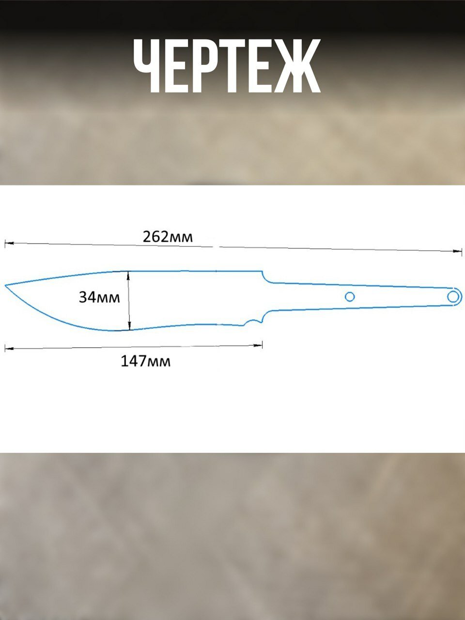 Заготовка изготовлена из высокопрочной стали х12мф, что гарантирует её устойчивость к износу и коррозии. Эта сталь известна своей твёрдостью и способностью долго сохранять остроту режущей кромки, что делает клинок надёжным инструментом для различных целей.