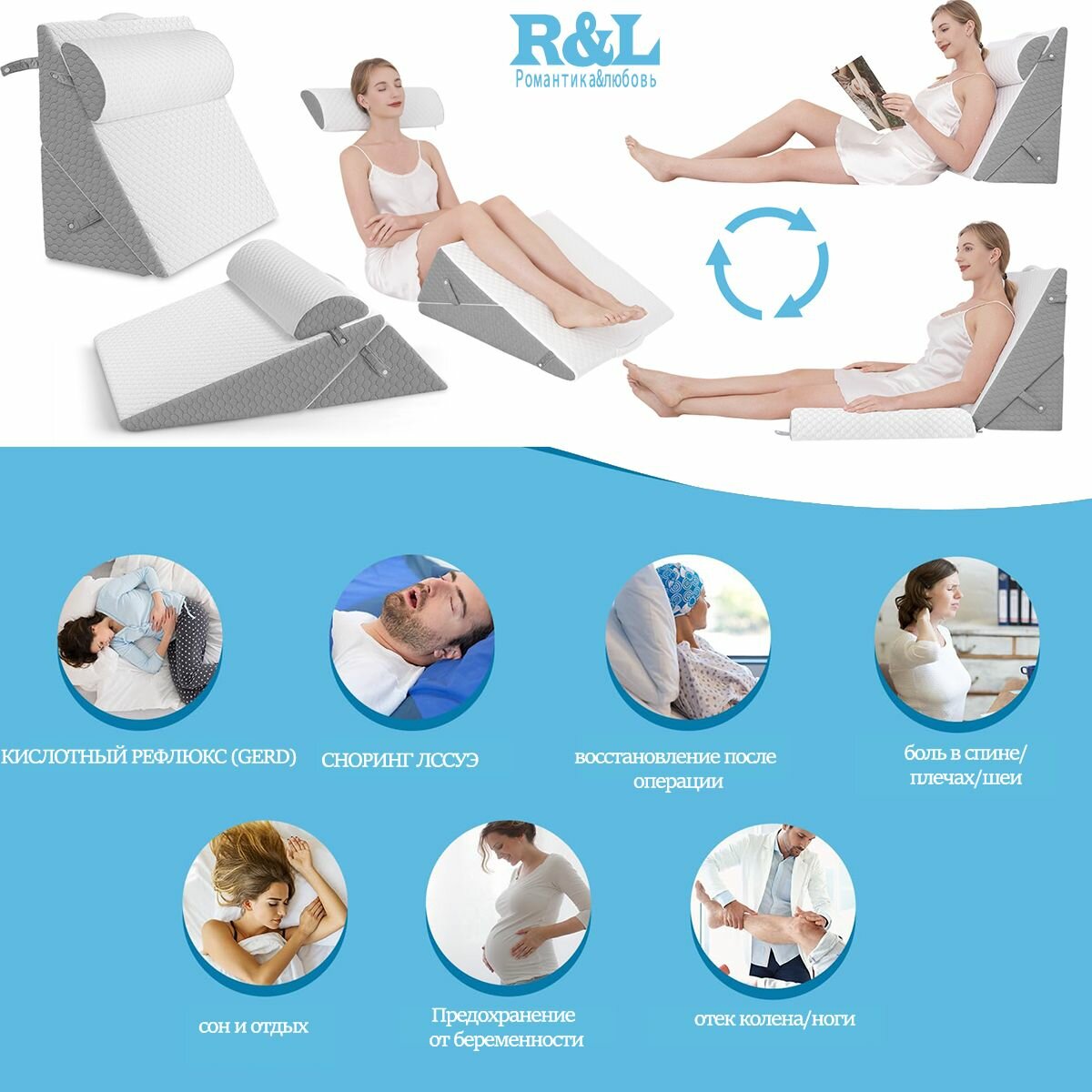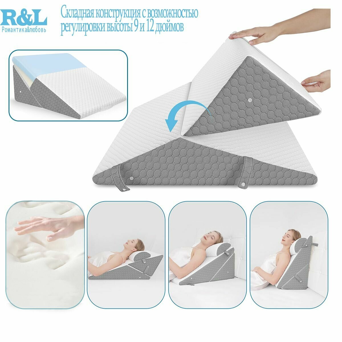 【Высококачественная пена】: R&L Foam Wedge Pillow поставляется с двумя типами пены - верхним слоем дышащей пены с эффектом памяти и основой из устойчивой пены, которая адаптируется к вашей уникальной форме и поддерживает комфортный ночной сон с отличным устранением давления, устраняя любую духоту и делая ее более удобной, чем другие клиновидные изделия.