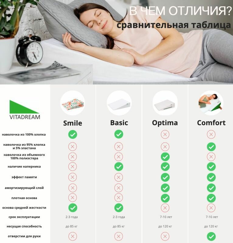 Купить Клиновидная подушка VITADREAM Smile с доставкой по всей России. Клиновидная подушка VITADREAM Smile: сравнение цен, характеристики, фото, актуальное наличие и цены.