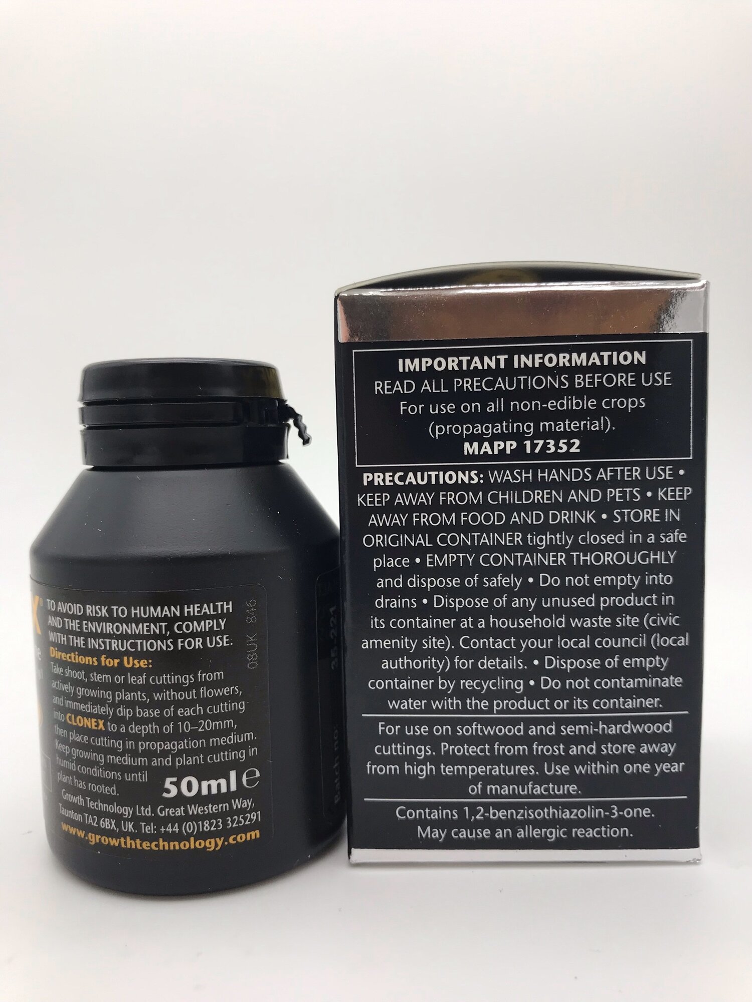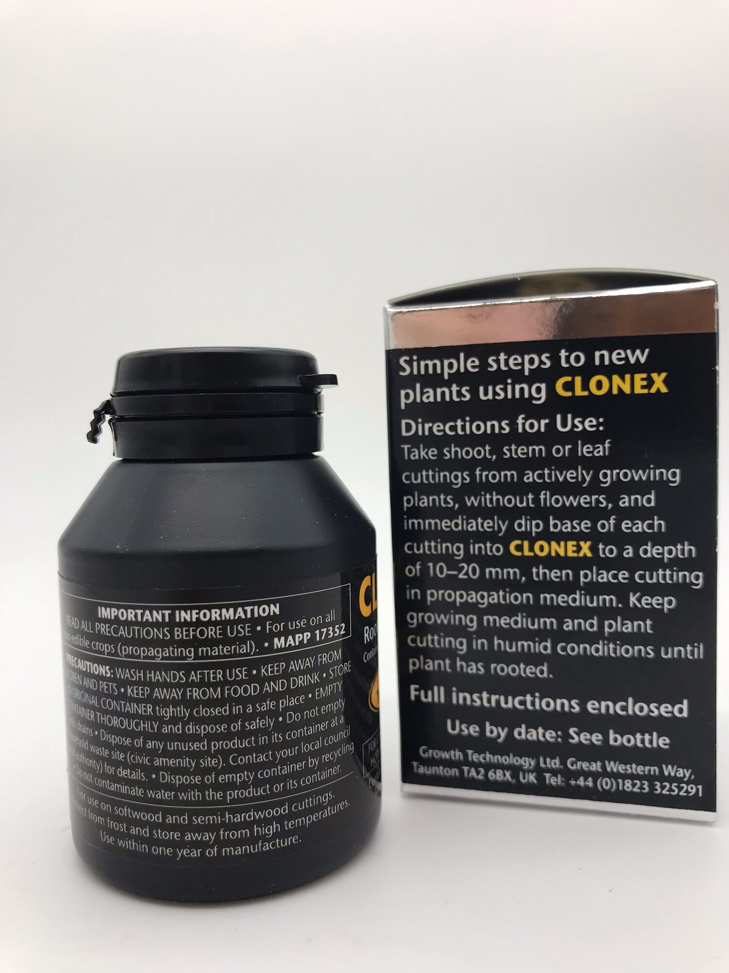 Clonex ,гель для укоренения растений - ,высокоэффективный корнеобразователь, который выбирают любители и профессионалы по всему миру, чтобы обеспечить своим растениям успешное укоренение. Этот гормональный гель успешно применялся на миллиардах ростков, каждый раз показывая потрясающие результаты. Укоренение с Clonex ,- прекрасный выбор, поскольку его просто использовать, он моментально закупоривает ткани черенка, предотвращая попадание инфекций и содержит значительное количество корневого гормона, обеспечивая потрясающий рост корневой системы. Он не смывается во время полива, он более безопасен в сравнении с жидкими растворами и порошками, поскольку не может пролиться или просыпаться, а также будет оставаться на растении на всей стадии формирования корней. Хорошо работает совместно с продуктами ,Root Riot ,и ,Clonex Mist. Совет по использованию: 1. , , , Выберите молодые здоровые отростки лучших из ваших растений. Если это возможно, проведите опрыскивание средством ,Clonex Mist ,дважды за неделю до среза черенков. Отрежьте отростки так, чтобы на каждом было по 4 или 5 пар листьев, удалите две нижние пары. 2. , , , Всегда используйте для срезов чистые острые лезвия. Сделайте ровный диагональный срез в основании будущего черенка прямо под нижним лиственным узлом. 3. , , , Налейте в отдельный контейнер небольшое количество геля Clonex. ,важно: ,не окунайте черенки в общий контейнер и не возвращайте в него избыток ранее использованного геля - это может загрязнить свежий гель. 4. , , , После среза немедленно окуните черенок в гель Clonex примерно на 15 мм, затем вставьте черенок в пропагатор так, чтобы он надежно держался в нем. 5. , , , Проведите опрыскивание черенков средством ,Clonex Mist, если это возможно. Опустите крышку пропагатора и закройте вентиляционные отверстия. 6. , , , По возможности, продолжайте опрыскивать растения через каждые 2-3 дня. Через 2-3 дня приоткройте вентиляционные окошки и с каждым днем приоткрывайте окошки чуть шире. Проверьте корни через несколько дней и продолжайте опрыскивать (по возможности) до тех пор, пока не высадите растение. Если вы собираетесь высаживать его в почву, не повредите корни, засыпайте землю под них и аккуратно распределяйте вокруг важно: ,новые черенки нужно держать в накрытом пропагаторе, и для большинства из них подходит температура между 21 и 24C и влажность 90%. Когда растение отрастит корни, нужно впустить воздух, чтобы растение могло укрепиться, но не делайте этого резко. Каждый день слегка приоткрывайте вентиляционные окошки и крышку. Когда растения наберутся силы, высадите их в почву.