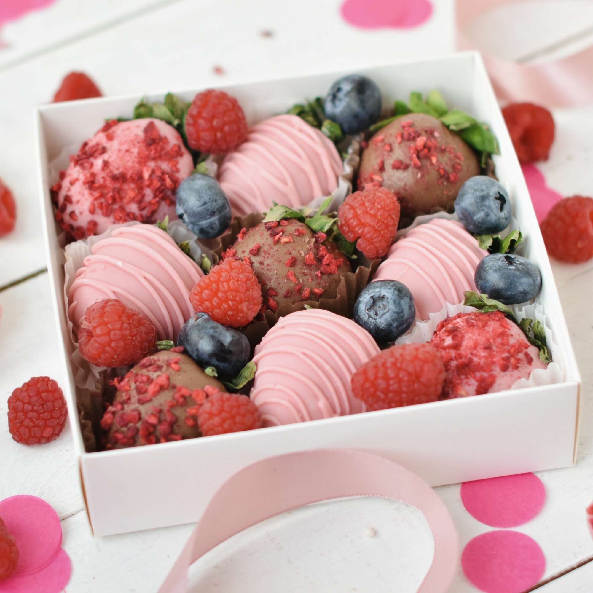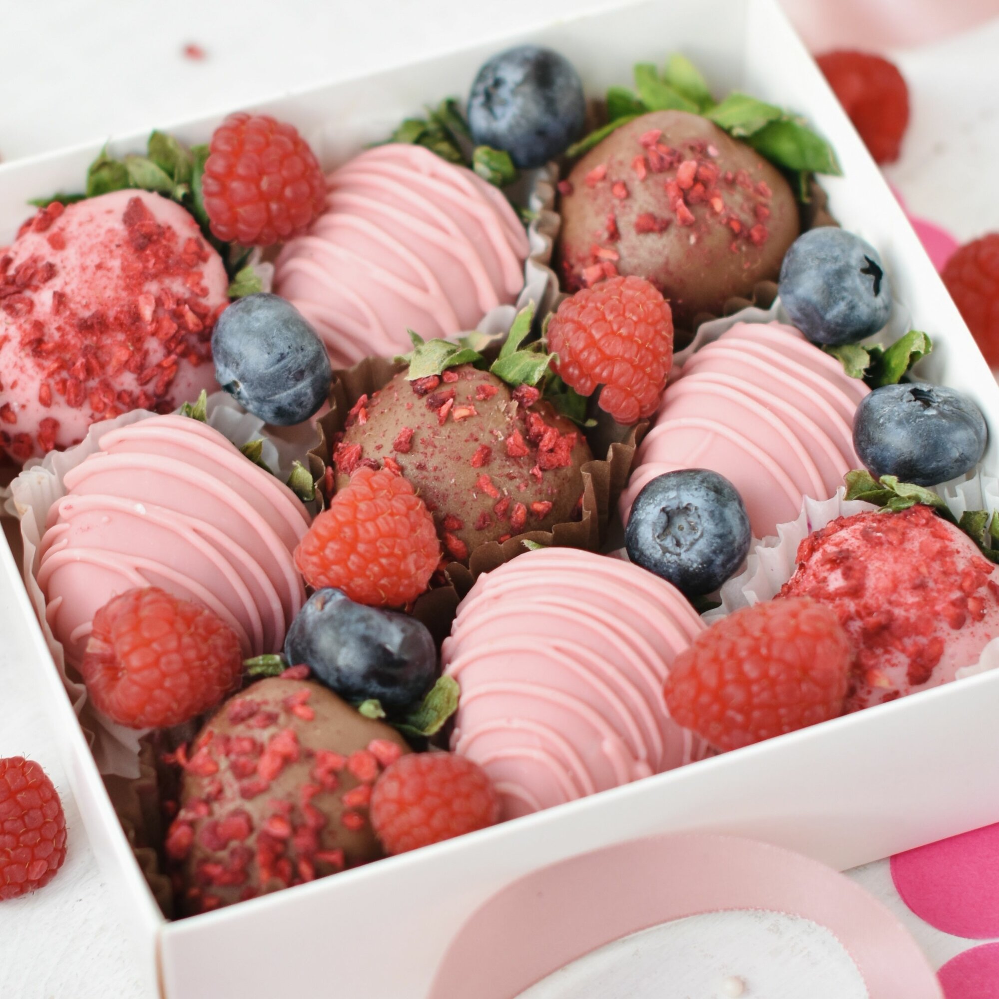 Клубника в бельгийском шоколаде с малиной и голубикой «Любимка», сладкий подарок