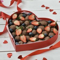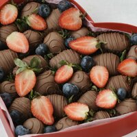 Набор из клубники в бельгийском молочном шоколаде с добавлением половинок клубники и голубикой. Порадуй свою половинку вкусным шикарным подарком Очень классный, популярный и вкусный подарок для любимой девушки, жены, мамы, бабушки, доченьки или сестрёнки, подружке, коллеге на работе или возлюбленной. Такой сюрприз никого не оставит равнодушным!