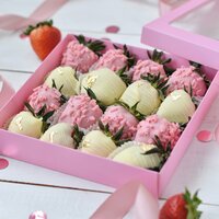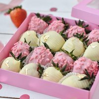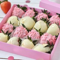 Набор из клубники в бельгийском белом и клубничном шоколаде с добавлением золота и шоколадных лепестков Очень классный, популярный и вкусный подарок для любимой девушки, жены, мамы, бабушки, доченьки или сестрёнки, подружке, коллеге на работе или возлюбленной. Такой подарок никого не оставит равнодушным!