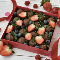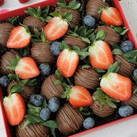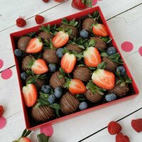 Набор из клубники в бельгийском молочном шоколаде с добавлением голубики Очень классный, популярный и вкусный подарок для любимой девушки, жены, мамы, бабушки, доченьки или сестрёнки, подружке, коллеге на работе или возлюбленной. Такой подарок никого не оставит равнодушным! При составление композиций наши мастера тщательно отбирают каждую ягодку, в результате чего к вам попадает самая спелая, сочная и сладкая клубничка! Мы используем только премиальный бельгийский шоколад Barry Callebaut. Вы можете быть уверены в идеальном исполнении вашего заказа.