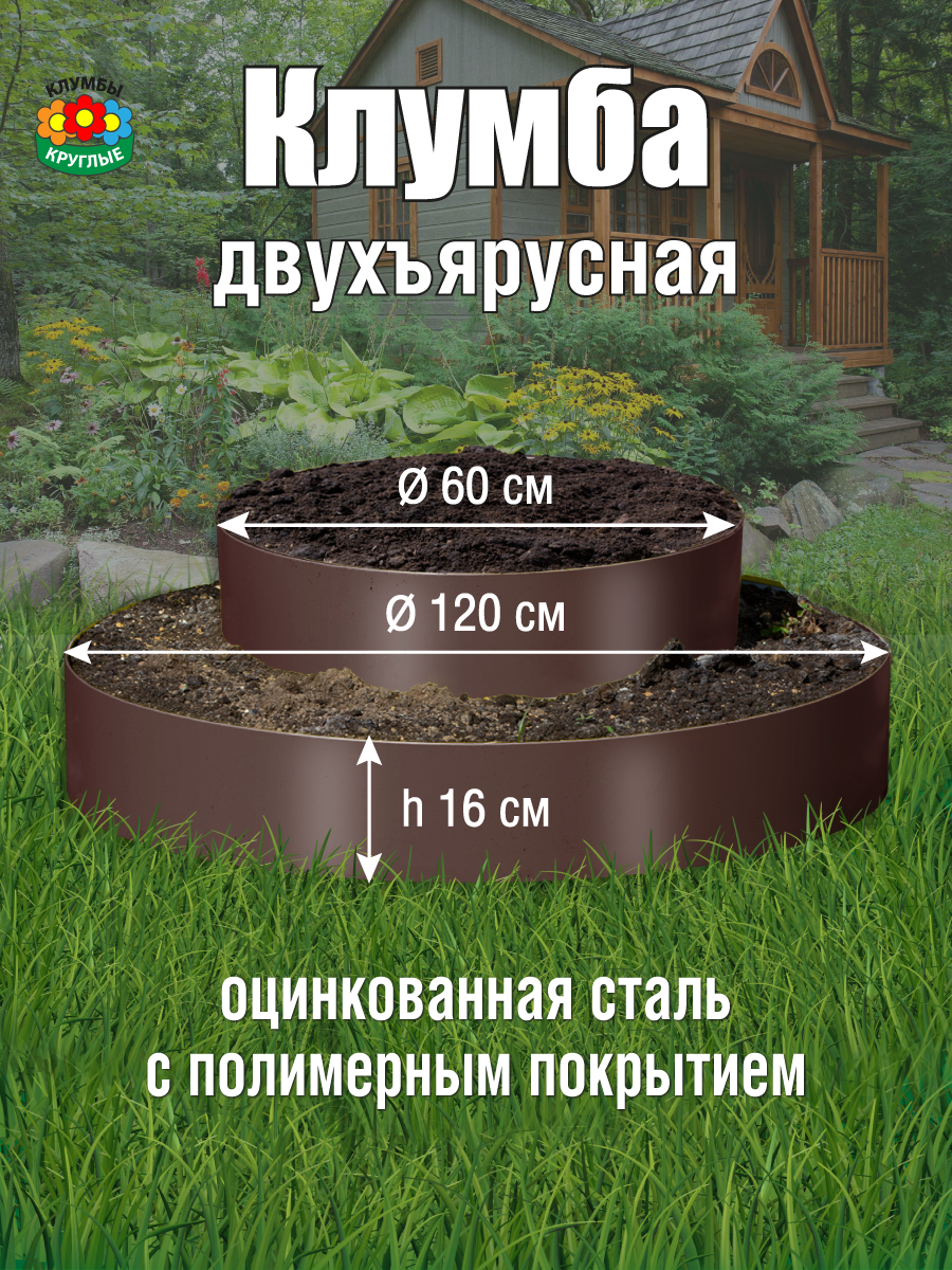 Клумба садовая для цветов двухъярусная оцинкованная круглая / Шоколадно-коричневый: сравнение цен, характеристики, фото, актуальное наличие и цены.