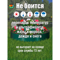 Основным преимуществом бордюра для клумбы является его двойная защита. Он изготовлен из оцинкованной стали, которая обеспечивает ему прочность и стойкость к коррозии. Кроме того, оцинкованная клумба имеет полимерное покрытие, которое защищает ее от внешних воздействий, таких как дождь, снег и солнце и увеличивает срок службы.