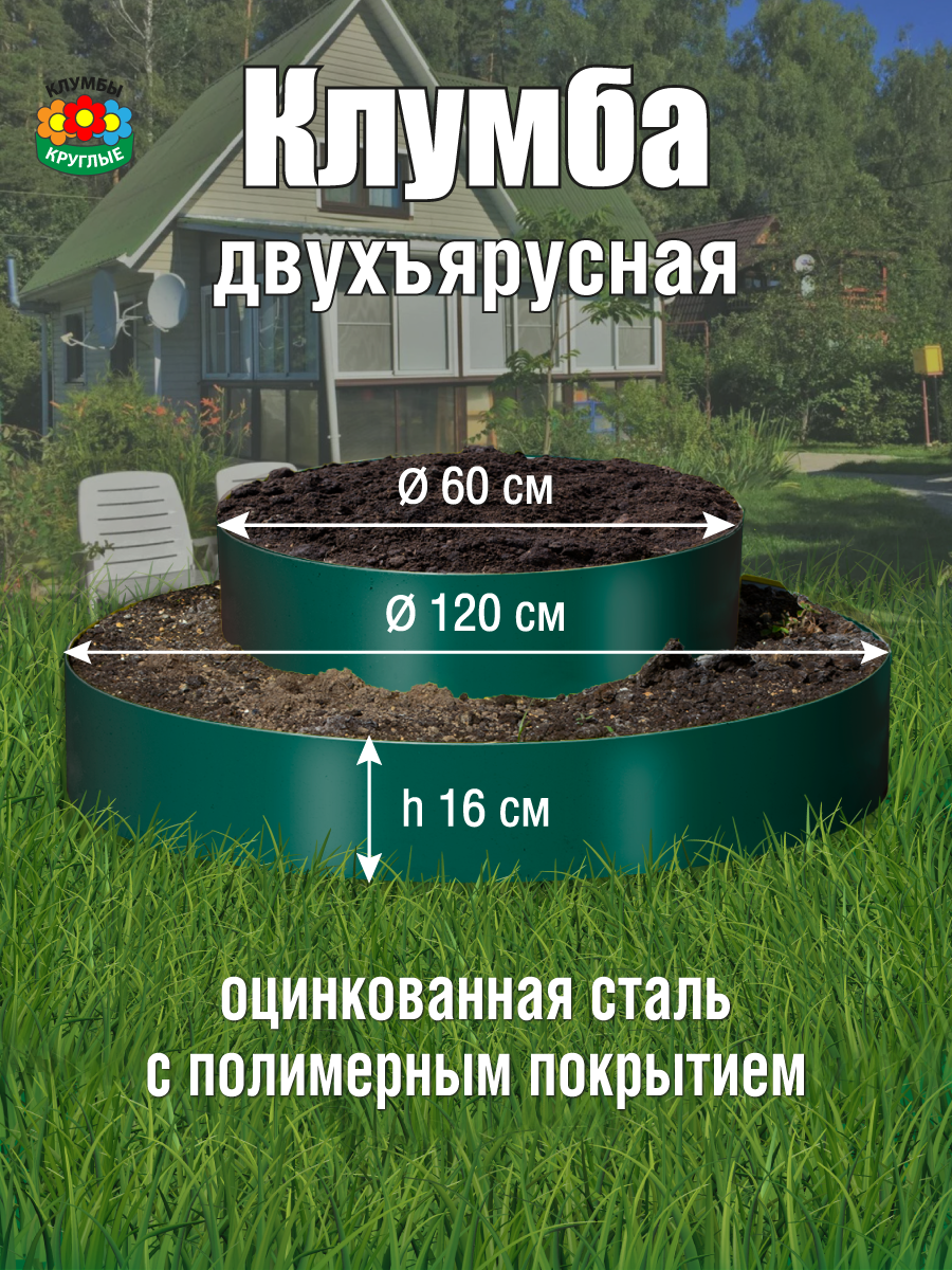 Ограждение для клумбы имеет универсальный дизайн, который позволяет вам создавать клумбы разных диаметров, в зависимости от ваших потребностей. Например, вы можете собрать клумбу диаметром 60 см для небольших цветочных композиций или создать впечатляющую клумбу диаметром 180 см для разнообразных кустарников и многолетних растений. Кроме того, с помощью нескольких полуколец вы можете собрать двухъярусные или даже трехъярусные клумбы, создавая уникальные композиции.