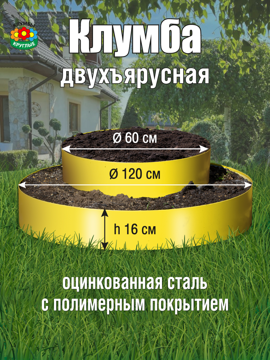 Клумба садовая для цветов двухъярусная оцинкованная круглая / Желтая: сравнение цен, характеристики, фото, актуальное наличие и цены.