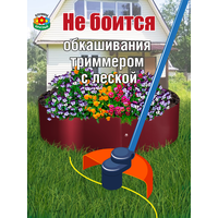- Давление земли изнутри ограждения клумбы распределяется равномерно. При такой конструкции нет необходимости в применении дополнительных ребер жесткости, подпорок, колышков, как в прямоугольных клумбах.