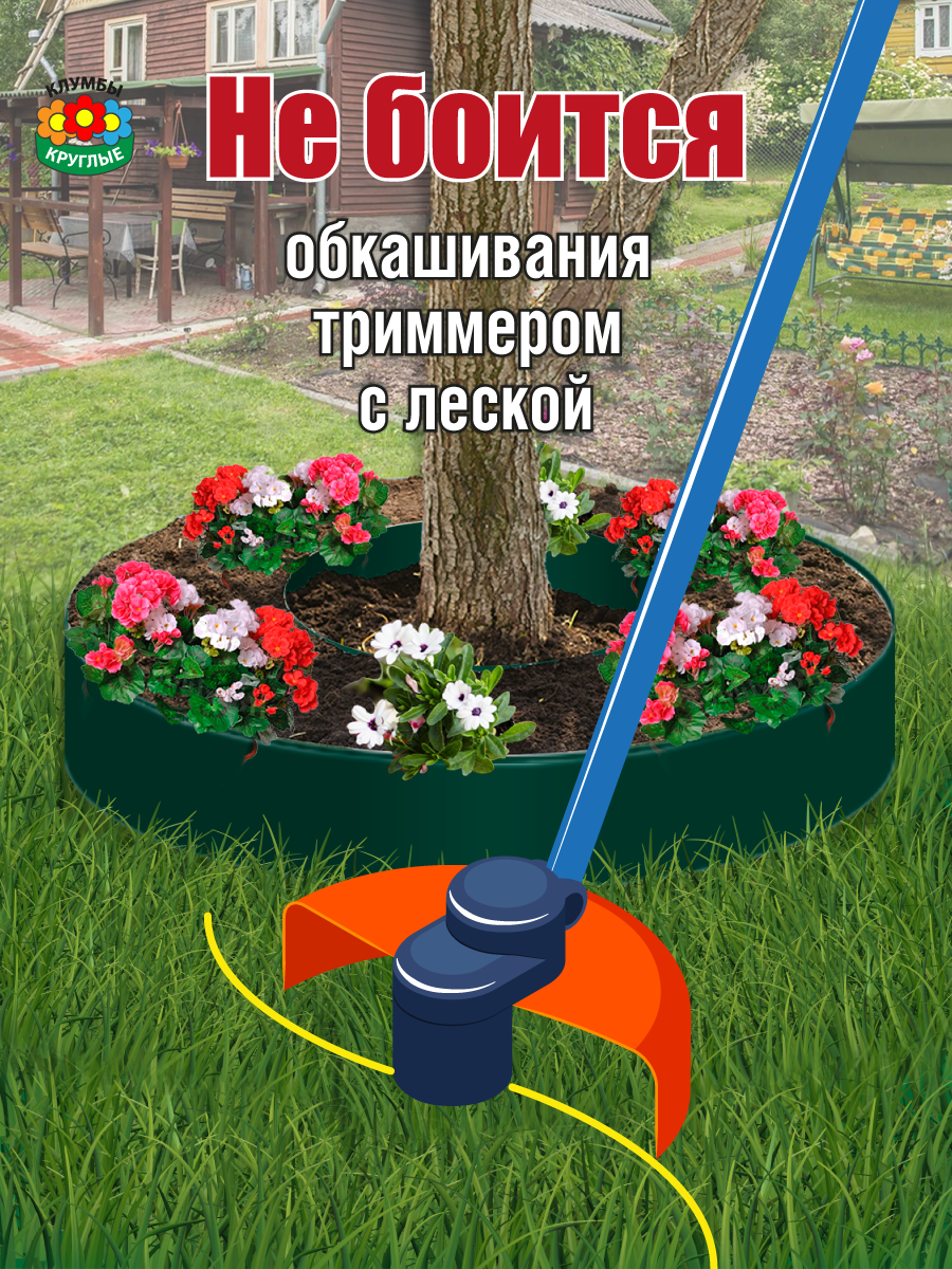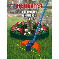 - Давление земли изнутри ограждения клумбы распределяется равномерно. При такой конструкции нет необходимости в применении дополнительных ребер жесткости, подпорок, колышков, как в прямоугольных клумбах.