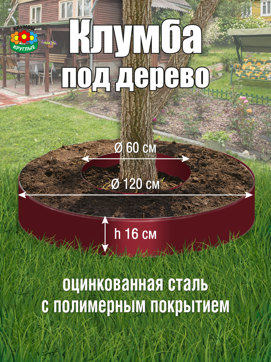 Оцинкованная садовая клумба для цветов вокруг дерева круглая