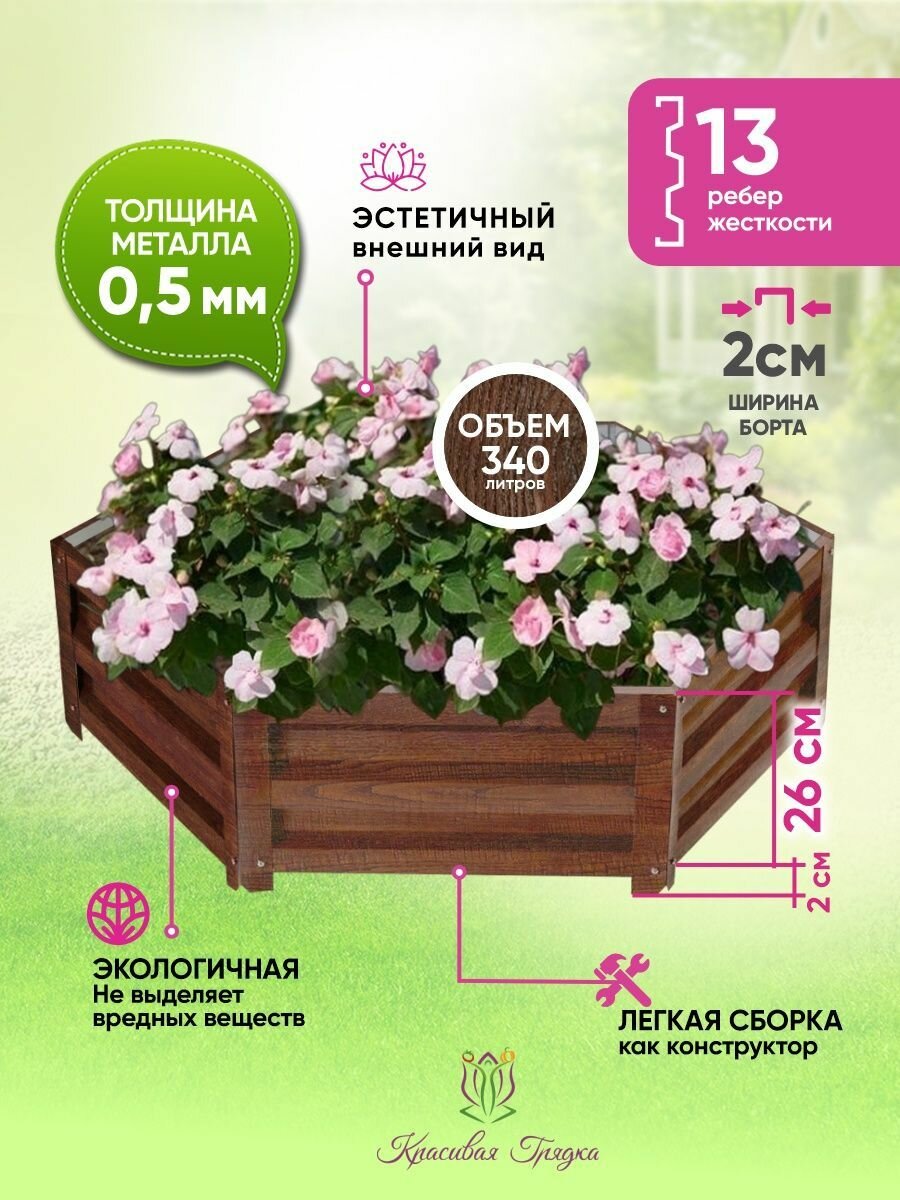 Клумба садовая оцинкованная для цветов и растений «Красивая грядка», усиленная, цвет дуб антик: сравнение цен, характеристики, фото, актуальное наличие и цены.