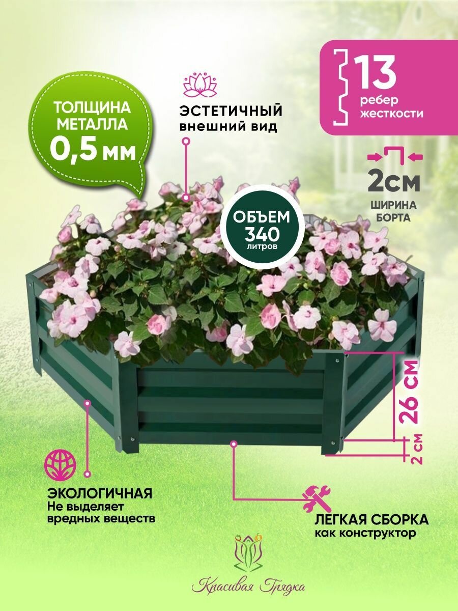 Клумба садовая оцинкованная для цветов и растений «Красивая грядка», усиленная, зеленая: сравнение цен, характеристики, фото, актуальное наличие и цены.