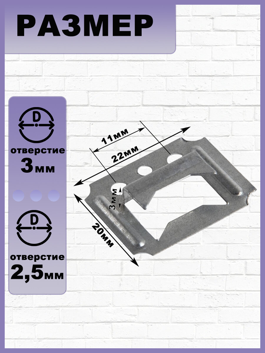 Кляймеры №3 с гвоздями в комплекте. Высота язычка 3 мм (расстояние язычка кляймера от его основания). Крепеж для вагонки, стеновых панелей, ПВХ, МДФ-панелей и блок-хаусов. Кляймер для вагонки - это специальные скобы, которые изготавливаются из оцинкованного металла. Конструкция кляймера направлена на то что бы обеспечить надёжный крепёж вагонки к обрешётке. Металлическая деталь имеет отверстия для гвоздей или скоб, а также язычок, удерживающий облицовочный материал за паз. Кляймеры для крепления панелей имеют высокую прочность монтажа. Готовое полотно выглядит очень аккуратно, так как скрытые элементы абсолютно не видны снаружи, обшивка выглядит чистой и аккуратной. Скоба прячется между обшивкой и опорной рейкой элементы обшивки не подвергаются разрушению. Материалом для изготовления служит оцинкованная сталь, позволяющая использовать метизы даже во влажных помещениях (бани или сауны). Простота, удобство монтажа; обшивка на кляймерах свободно переносит механические нагрузки. Можно найти как металлическая перфорированная пластина, клипса. Подходит для монтажа вагонки штиль, имитации бруса, планкена. Кляймер помечают номером от 1 до 8, который обозначает расстояние язычка изделия от его основания в миллиметрах. Для крепления каждого вида вагонки служит кляймер определённого номера. Наша компания "Билти" является прямым производителем всех видов крепежей.